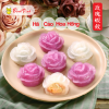 外皮以天然食材紫薯染色,經由巧妙的人工 雕塑技術,呈現出華麗如玫瑰花般的外觀。 內餡則精選自越南水產之鄉金甌省的鮮美蝦 仁,絕無添加任何豬肉成分。每一口都能帶 給您新鮮蝦仁獨特的脆彈口感,是一場視覺